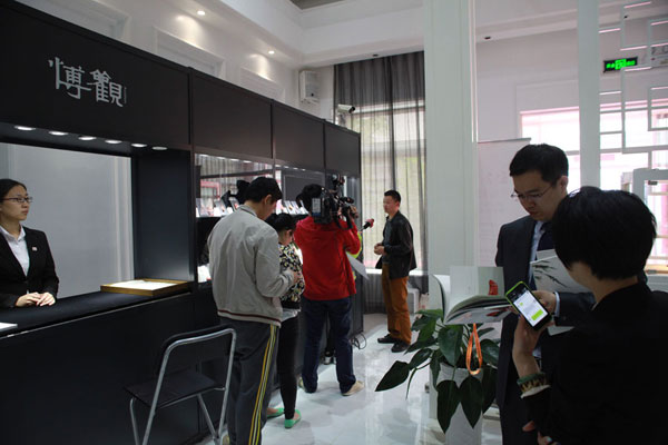 筹备已久的第七期“玲珑美玉——当代玉石雕刻名家精品无底价拍卖会”在2014年4月16日开始了前期的预展工作。博观拍卖的场地已经从天安天地珠宝艺术汇迁入现在的懋隆文化产业创意园,然而这一点都没有影响众多藏家的观展热情,现场观展人员络绎不绝,工作人员也忙得不亦乐乎。